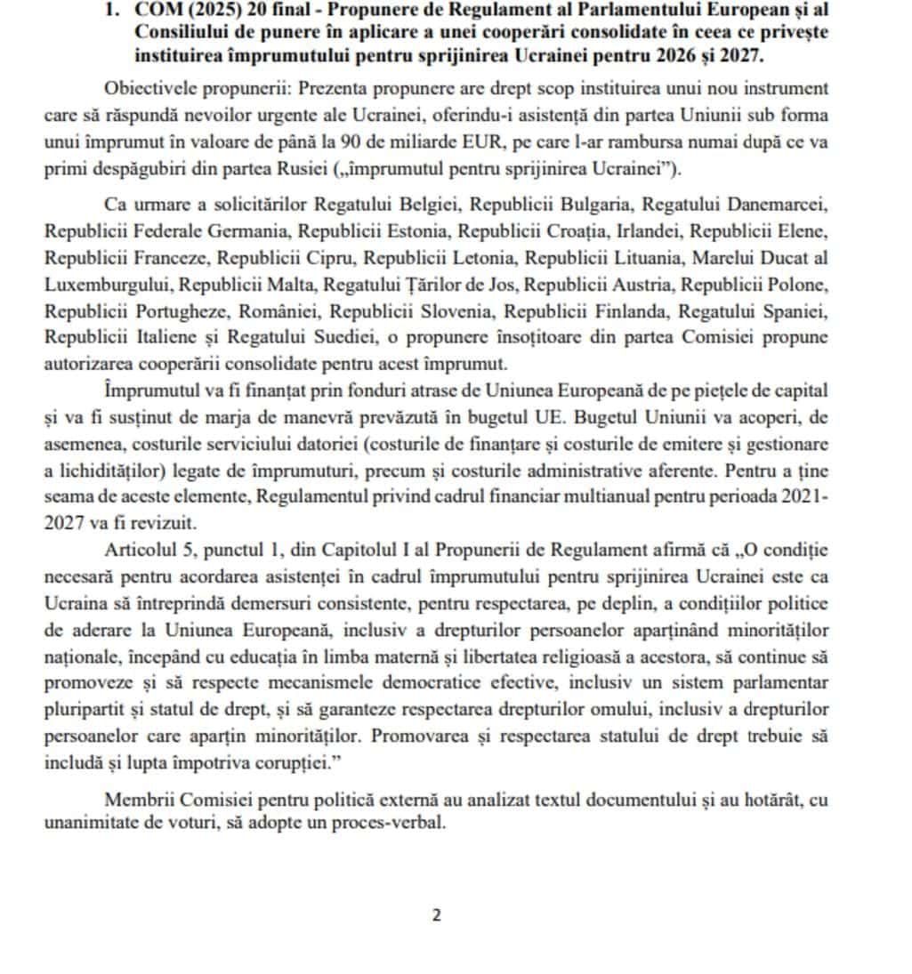 De aceea am fost uimiți când am văzut că sinteza scrisă a ședinței Comisiei de Politică Externă a Senatului României din 23 februarie, postată pe 2 martie 2026 pe site-ul Senatului, nu a făcut referire la discuțiile pe tema drepturilor lingvistice și religioase ale românilor din Ucraina din acea ședință și la observațiile noastre, cu excepția unui citat din Propunerea de Regulament al Parlamentului European și Consiliului de instituire a unui împrumut de 90 miliarde Euro pentru Ucraina, dar căruia nu i s-au atașat pentru context nici una dintre observațiile noastre din ședință.