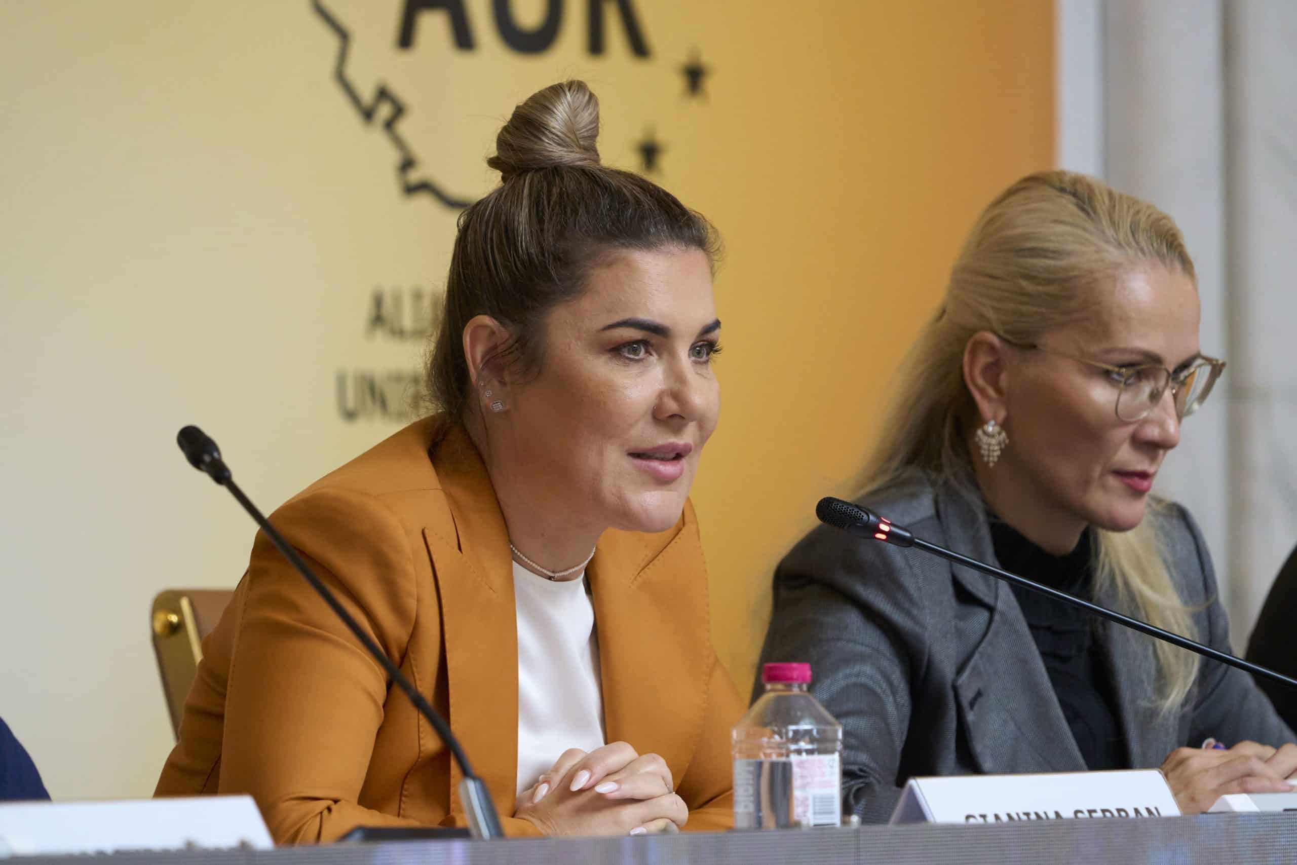 Deputatul AUR, Ramona-Ioana Bruynseels, a luat cuvântul în deschiderea evenimentului, subliniind că asociațiile de proprietari se află astăzi într-un punct critic dat de blocajele legislative provocate de Legea 196/2018.