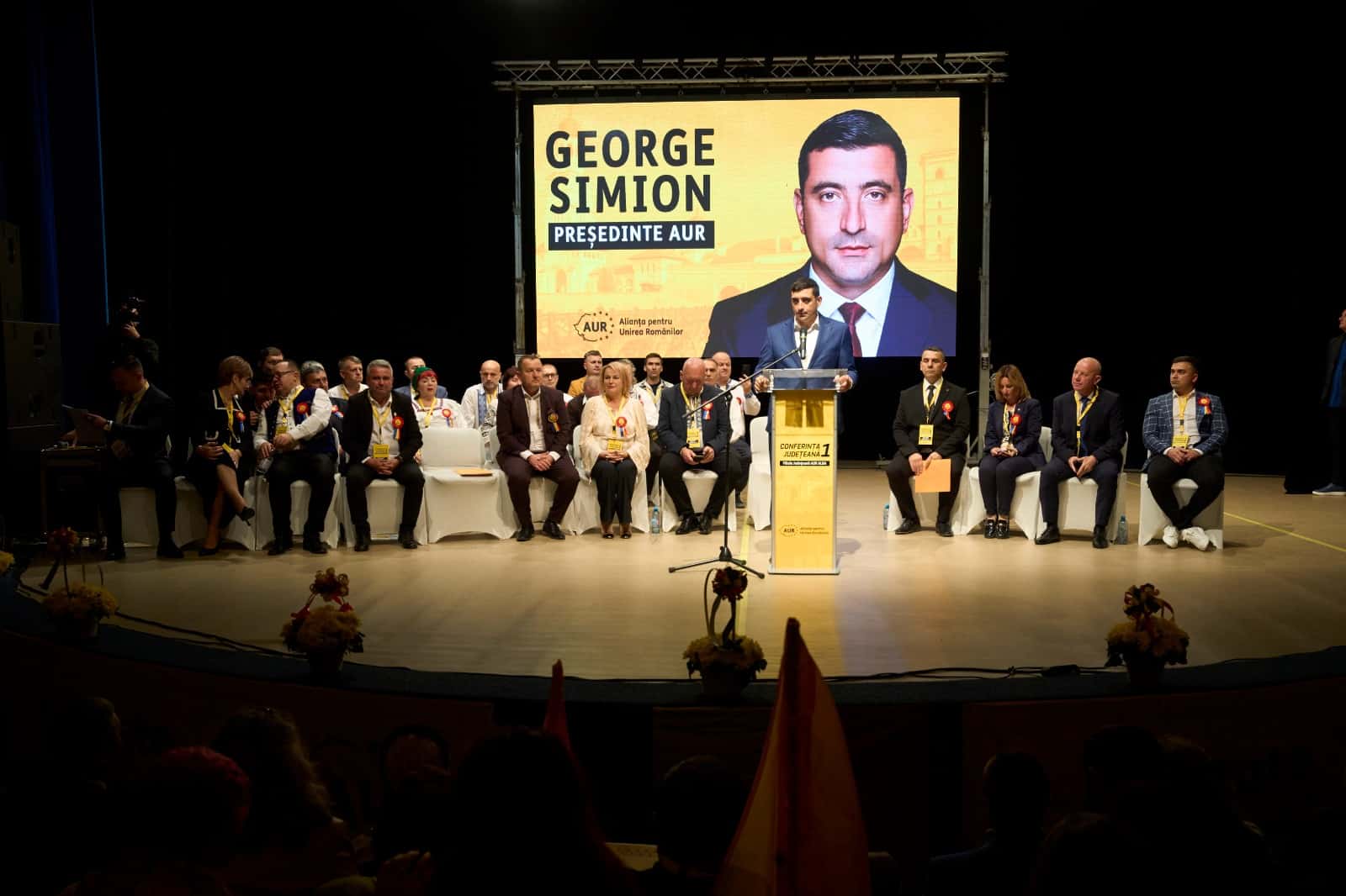 George Simion, președintele AUR, a deschis conferința cu un mesaj de mulțumire și încurajare, amintind de începuturile partidului și subliniind responsabilitatea fiecărui membru în creșterea acestuia.