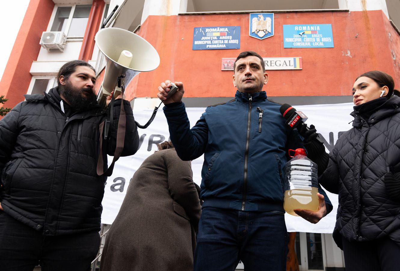 Peste 1.000 de argeșeni au protestat alături de AUR la Curtea de Argeș împotriva companiei de apă Aquaterm și a autorităților locale, după ce peste 50.000 de oameni din Curtea de Argeș, Valea Iașului, Valea Danului și Băiculești sunt lăsați fără apă potabilă de mai bine de patru luni. Apa de la robinet este declarată improprie consumului, după ce analizele au indicat contaminarea cu bacteria Clostridium perfringens, potrivit comunicatului emis de Primăria Curtea de Argeș, iar Direcția de Sănătate Publică Argeș nu a avizat reluarea furnizării. Cu toate acestea, populația continuă să fie obligată să plătească facturi integrale.
