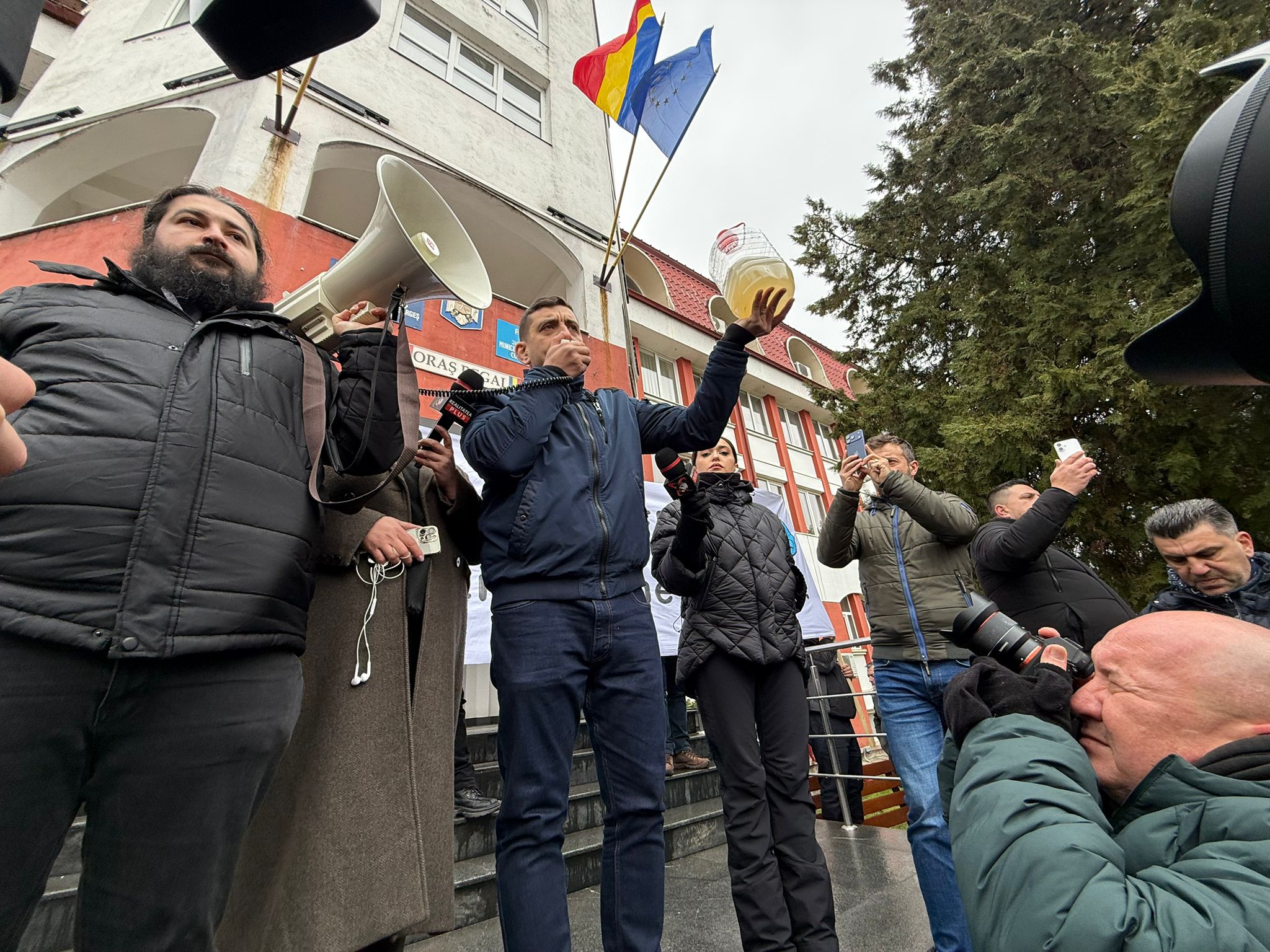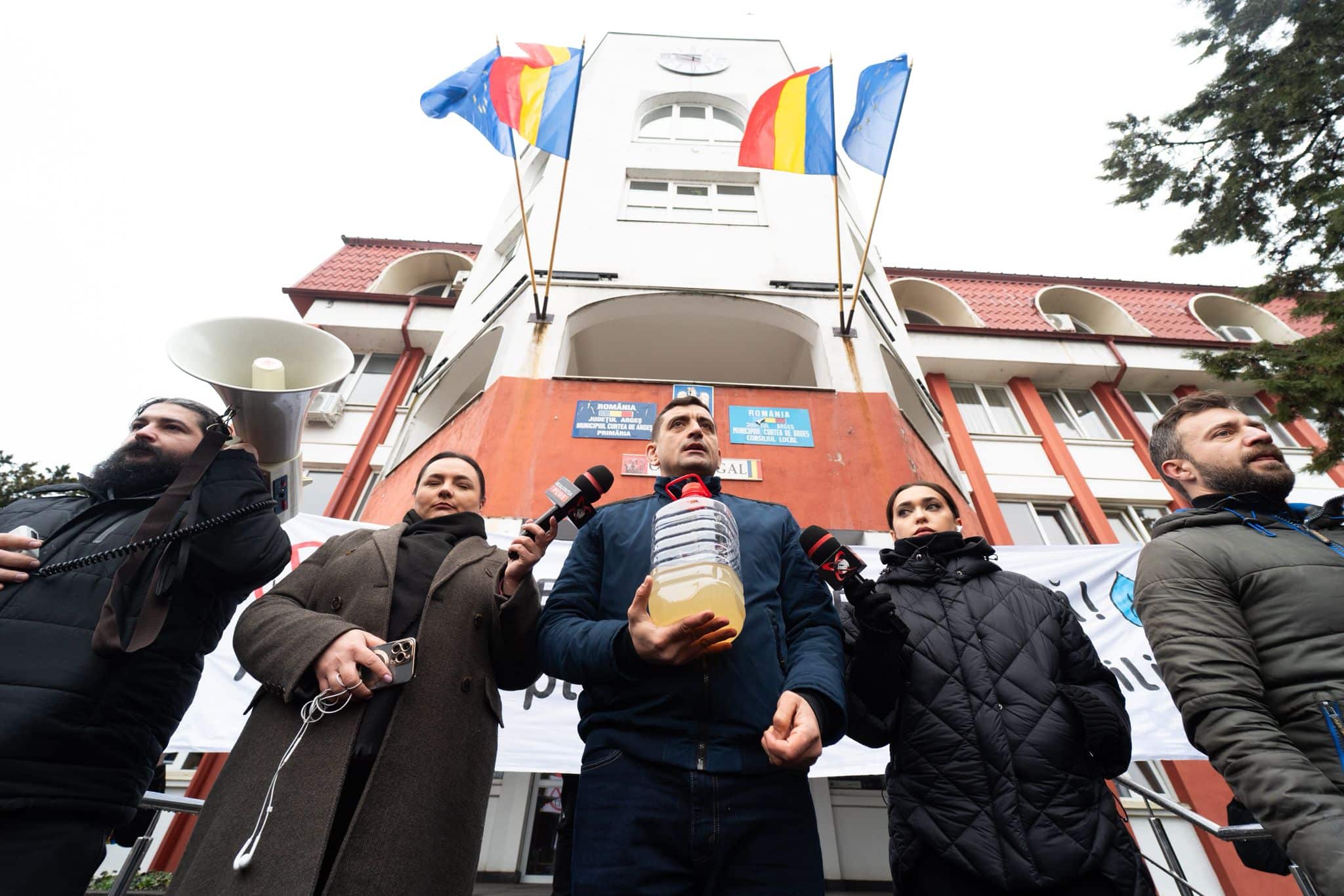 Peste 1.000 de argeșeni au protestat alături de AUR la Curtea de Argeș împotriva companiei de apă Aquaterm și a autorităților locale, după ce peste 50.000 de oameni din Curtea de Argeș, Valea Iașului, Valea Danului și Băiculești sunt lăsați fără apă potabilă de mai bine de patru luni. Apa de la robinet este declarată improprie consumului, după ce analizele au indicat contaminarea cu bacteria Clostridium perfringens, potrivit comunicatului emis de Primăria Curtea de Argeș, iar Direcția de Sănătate Publică Argeș nu a avizat reluarea furnizării. Cu toate acestea, populația continuă să fie obligată să plătească facturi integrale.