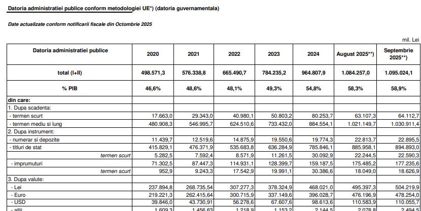 În anul 2025, deficitul bugetar a fost de 146 miliarde de lei, dar datoria guvernamentală a crescut cu 170 de miliarde de lei.