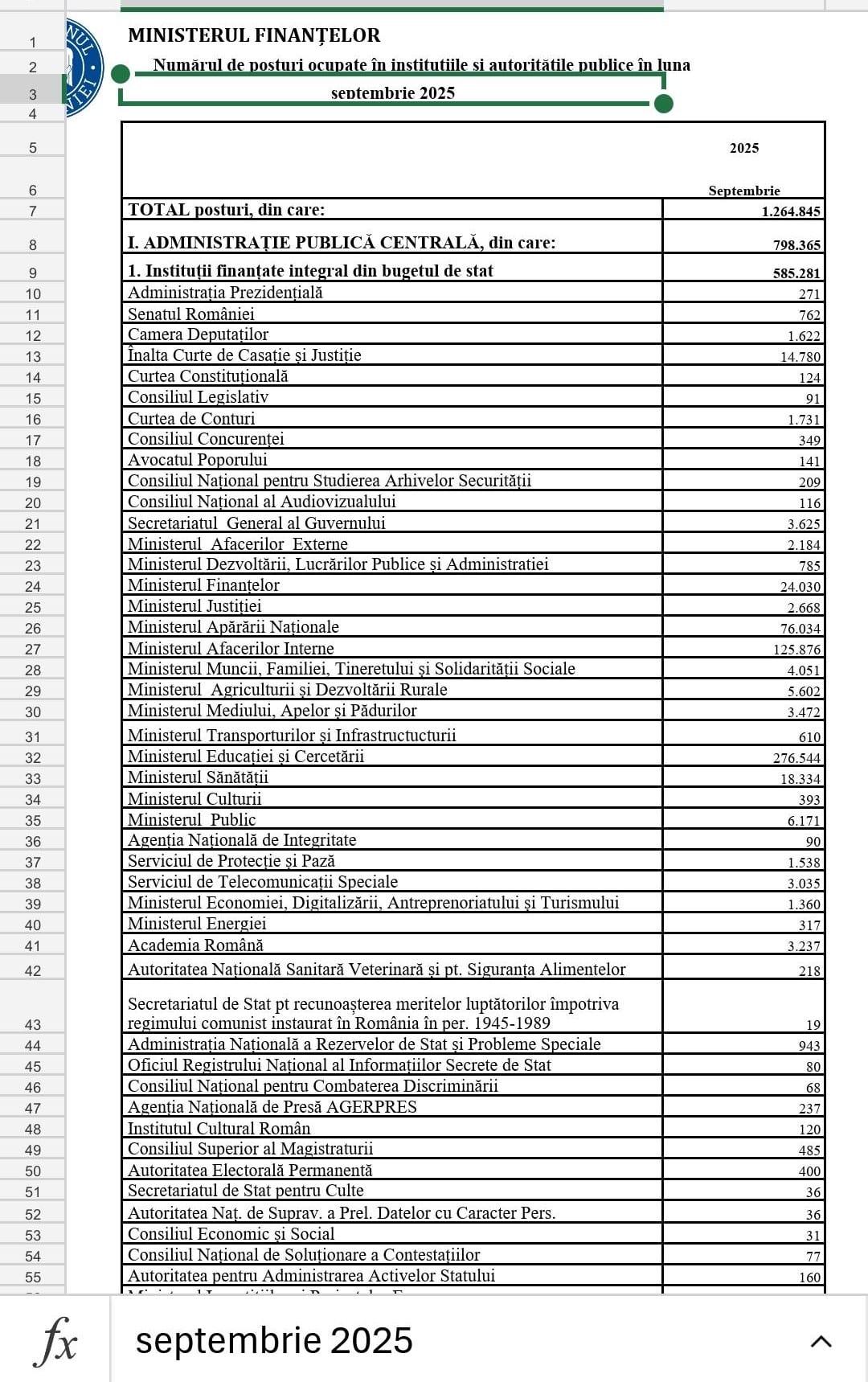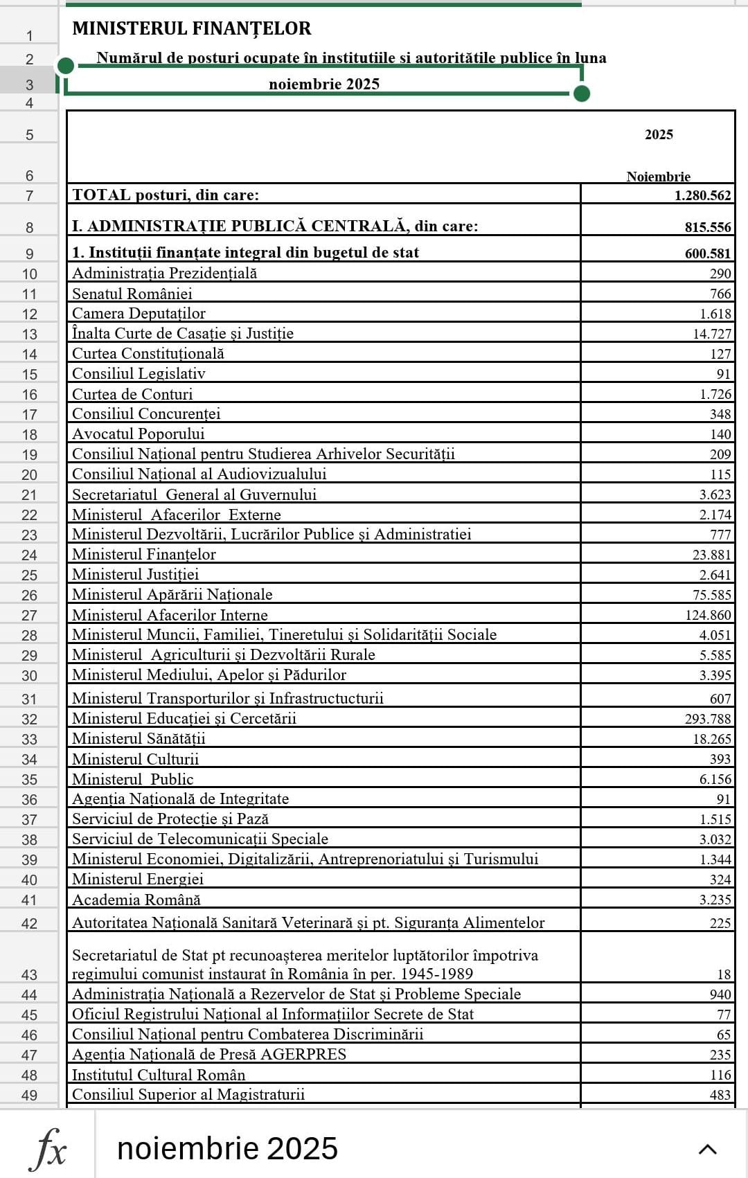„În luna septembrie 2025, România avea 1,264 milioane de bugetari. În luna noiembrie 2025, aceeași Românie avea 1,280 milioane de bugetari.