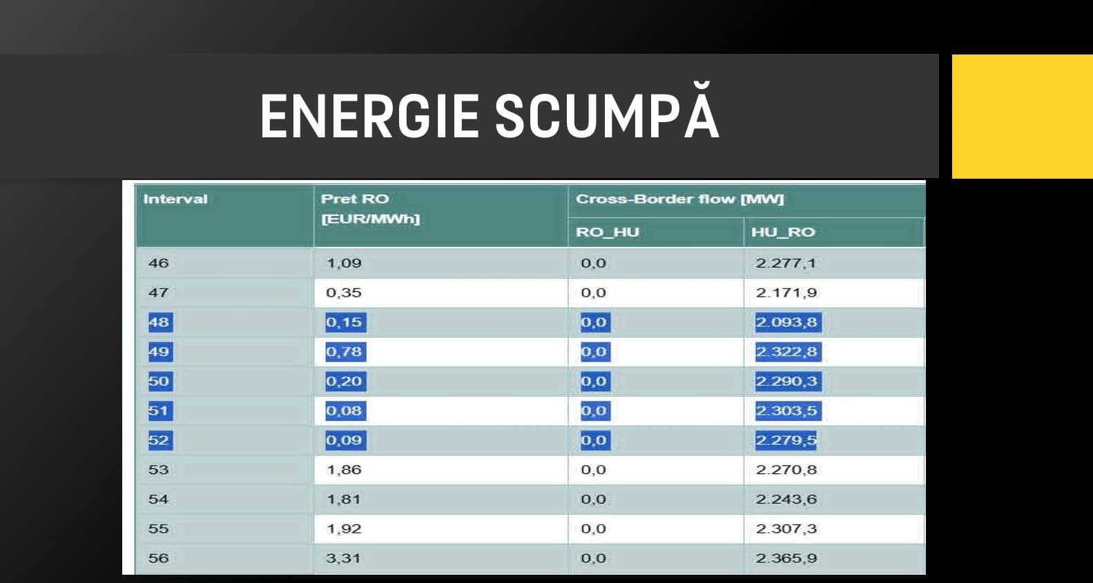 În ceea ce privește piața energiei, senatorul AUR a atras atenția că România exportă energie către Ungaria la prețuri foarte mici, de doar 1 leu/MWh, în timp ce, în alte intervale orare, importă energie la 2.500 lei/MWh.