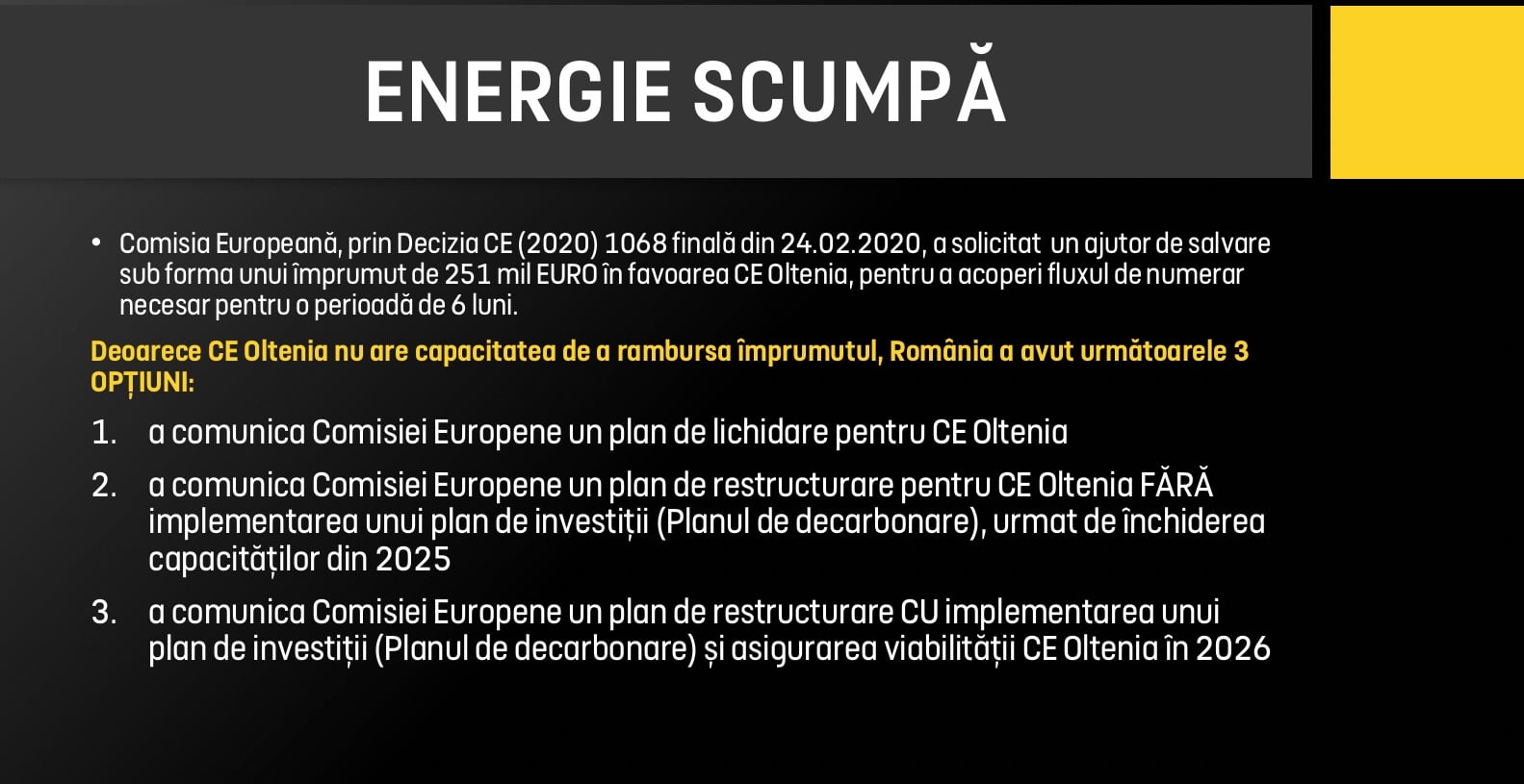 Senatorul a amintit că statul român a cheltuit deja un miliard de euro pentru modernizările de la Complexul Energetic Oltenia, inclusiv 100 de milioane pentru grupul 5 de la Rovinari, care va fi închis după doar un an de funcționare.