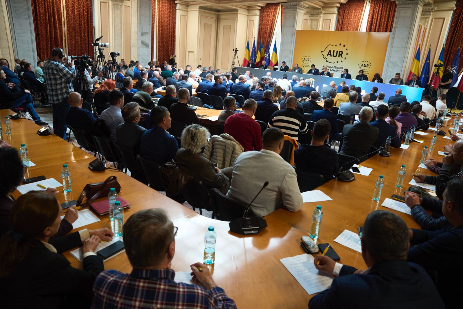 Conferința a fost deschisă de președintele AUR, George Simion, care a tras un semnal de alarmă privind prăbușirea agriculturii românești sub povara datoriilor, a lipsei piețelor de desfacere și a infrastructurii distruse.