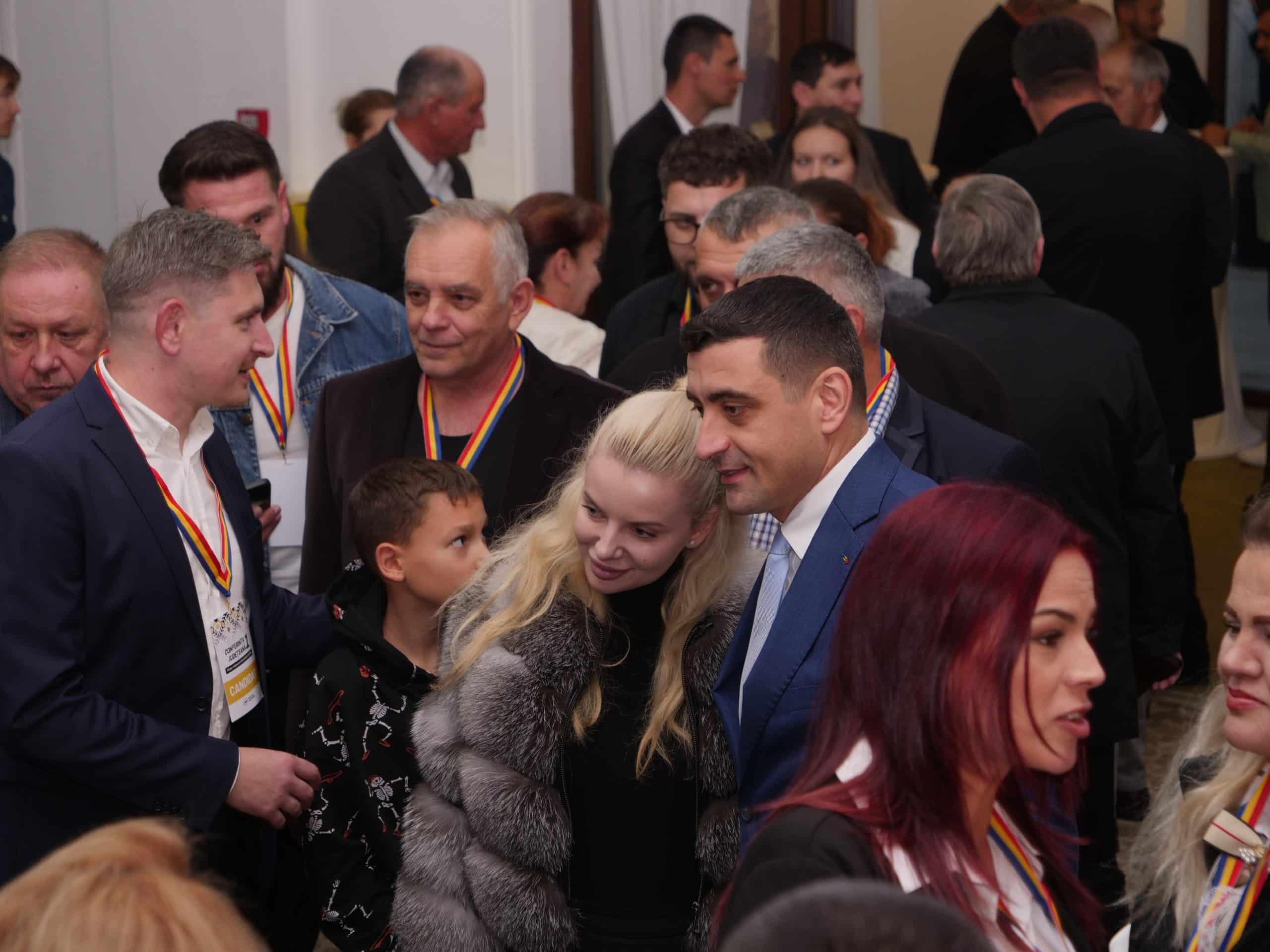 Președintele AUR, George Simion, a urcat pe scenă și a salutat organizarea primei conferințe județene AUR Caraș-Severin, subliniind munca de cinci ani prin care organizația și echipa condusă de Samuel Miclău au construit „cărămidă cu cărămidă” o structură trainică, capabilă să reprezinte județul într-un context politic complicat.