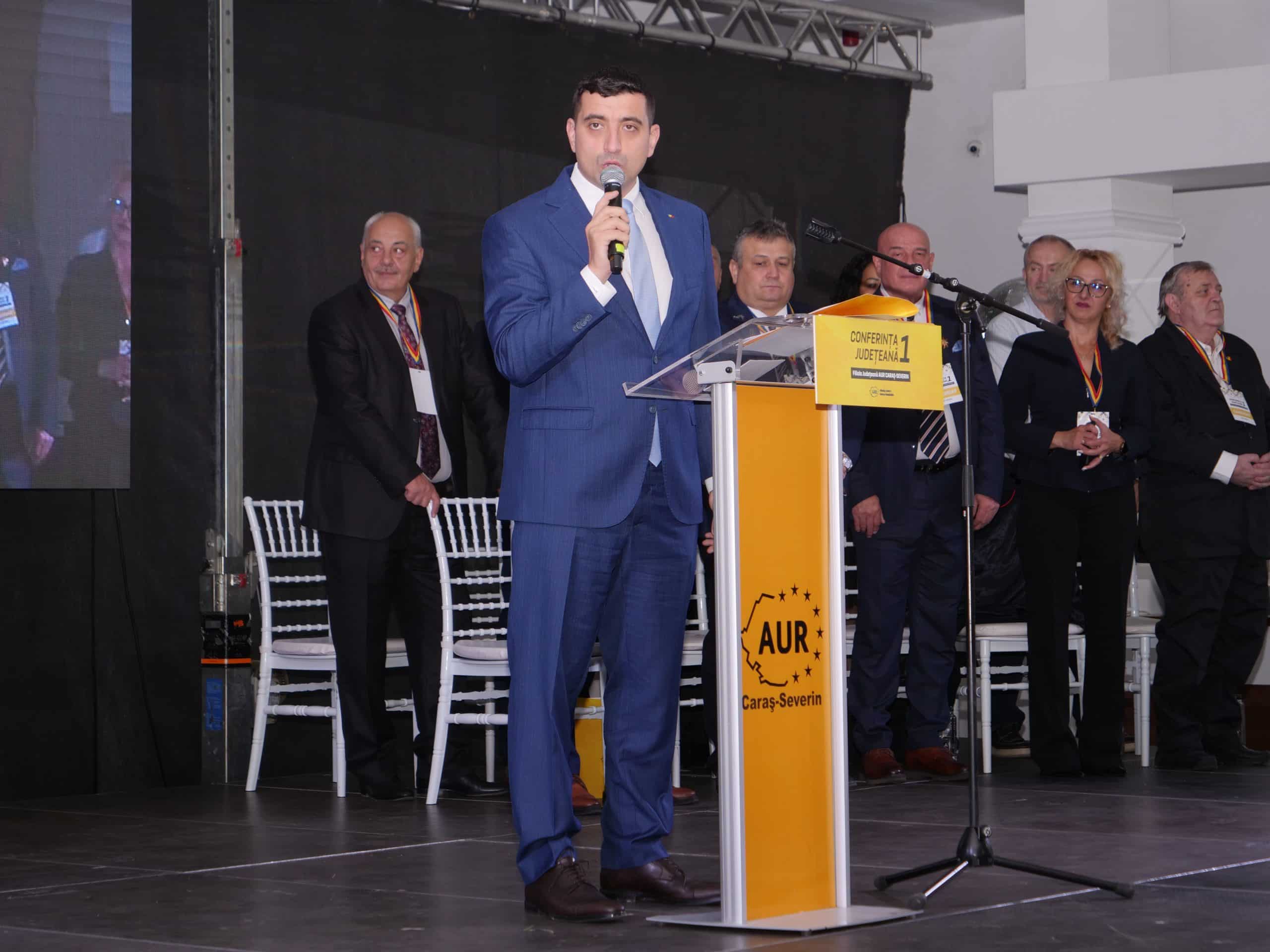 „Bine v-am găsit, Reșița! Bine v-am găsit, cărășeni! Bine v-am găsit, patrioți români! Sunt tare bucuros să fiu în mijlocul vostru, în această seară, alături de colegi din toată regiunea, pentru a fi prezenți la următorul pas pe care noi îl facem în construcția noastră, în mișcarea noastră, care este mult mai mult decât un partid politic. Astăzi are loc prima conferință județeană a AUR Caraș-Severin.”