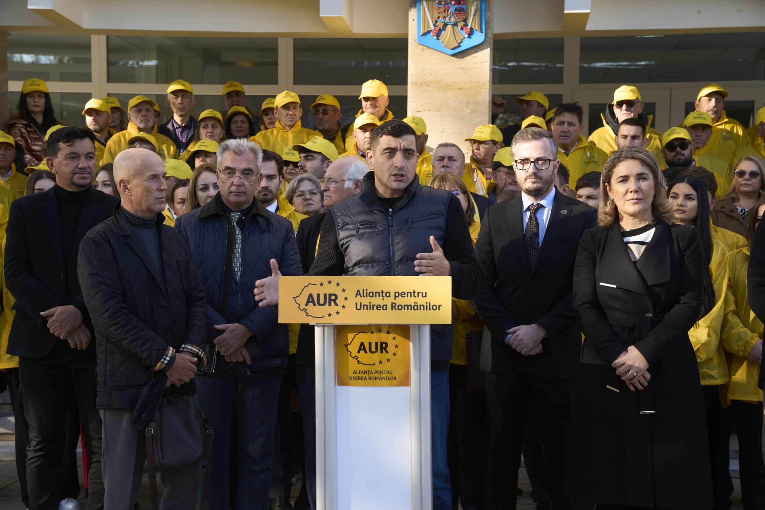 Am oprit azi pe drum, în benzinării, m-au oprit oamenii, m-au întrebat ce faceți aici, sunt alegeri pe 6 decembrie, vreau să văd pe voi dacă îl mai vreți pe Ciolacu sau nu și dacă mai vreți actuala coaliție sau nu. Am vizitat întreprinderi. Patronii ne-au rugat să nu se știe că am fost acolo pentru că e frică, pentru că vin controale, pentru că nu trăim în acea democrație în care trebuia să intrăm acum 35 de ani. Trebuie să ne debarasăm de frică. Trebuie să fim noi înșine și să luptăm. Suntem aici ca să luptăm și să avem o speranță”, a spus președintele AUR, George Simion.