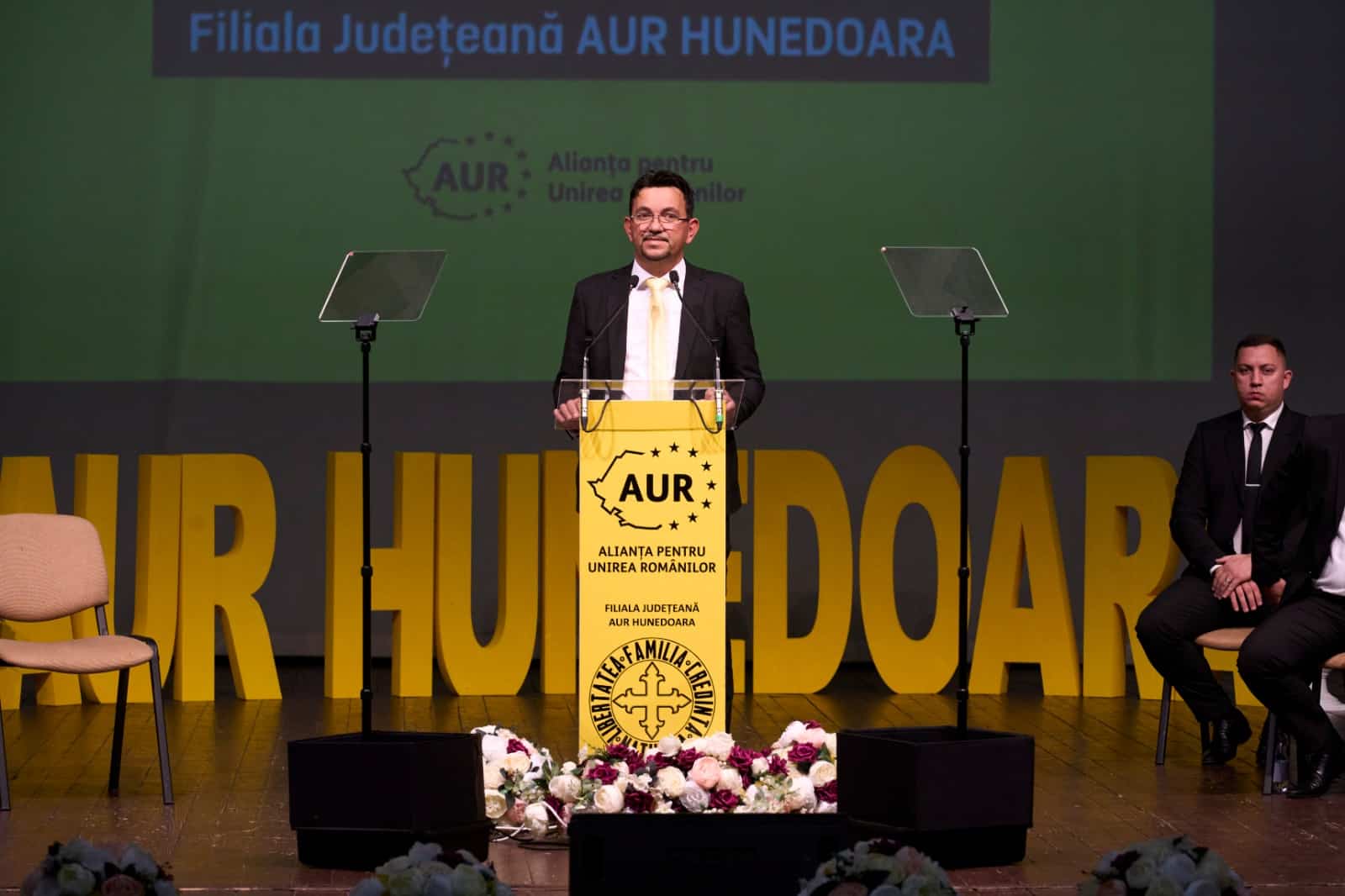 Conferința Județeană AUR Hunedoara este a patra organizată de AUR, după cele de la Alba, Argeș și Teleorman, în cadrul cărora au fost aleși președinții organizațiilor județene.